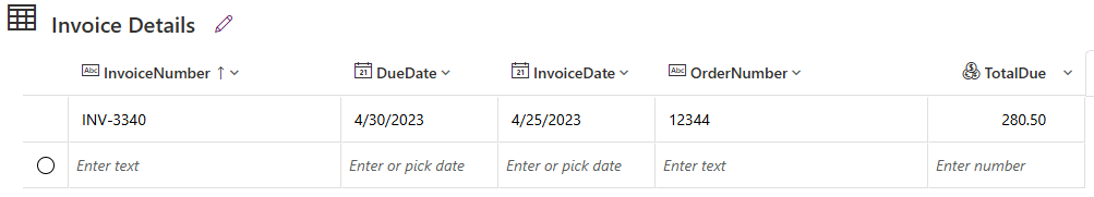 We now have an Invoice Details table created that will hold our Invoice Data. Pretty simple so far.